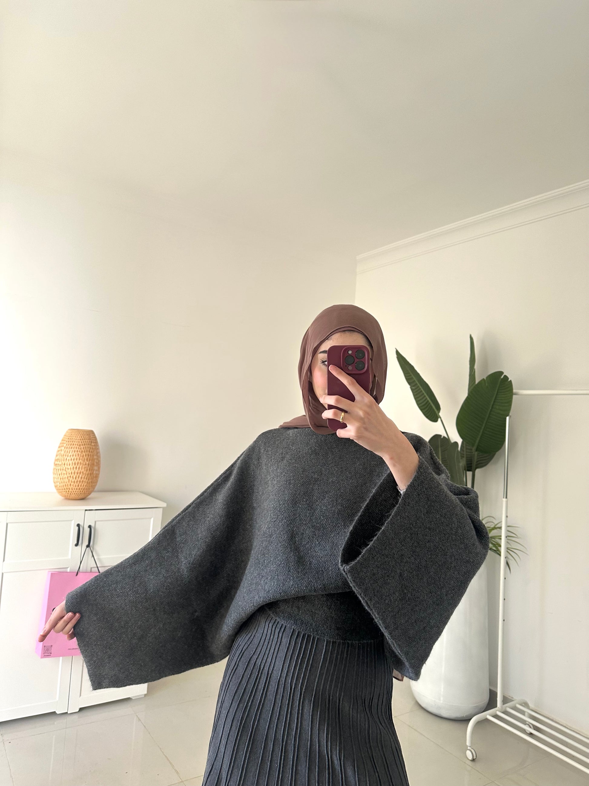 Batwing Sleeve Oversized Sweater- Gray