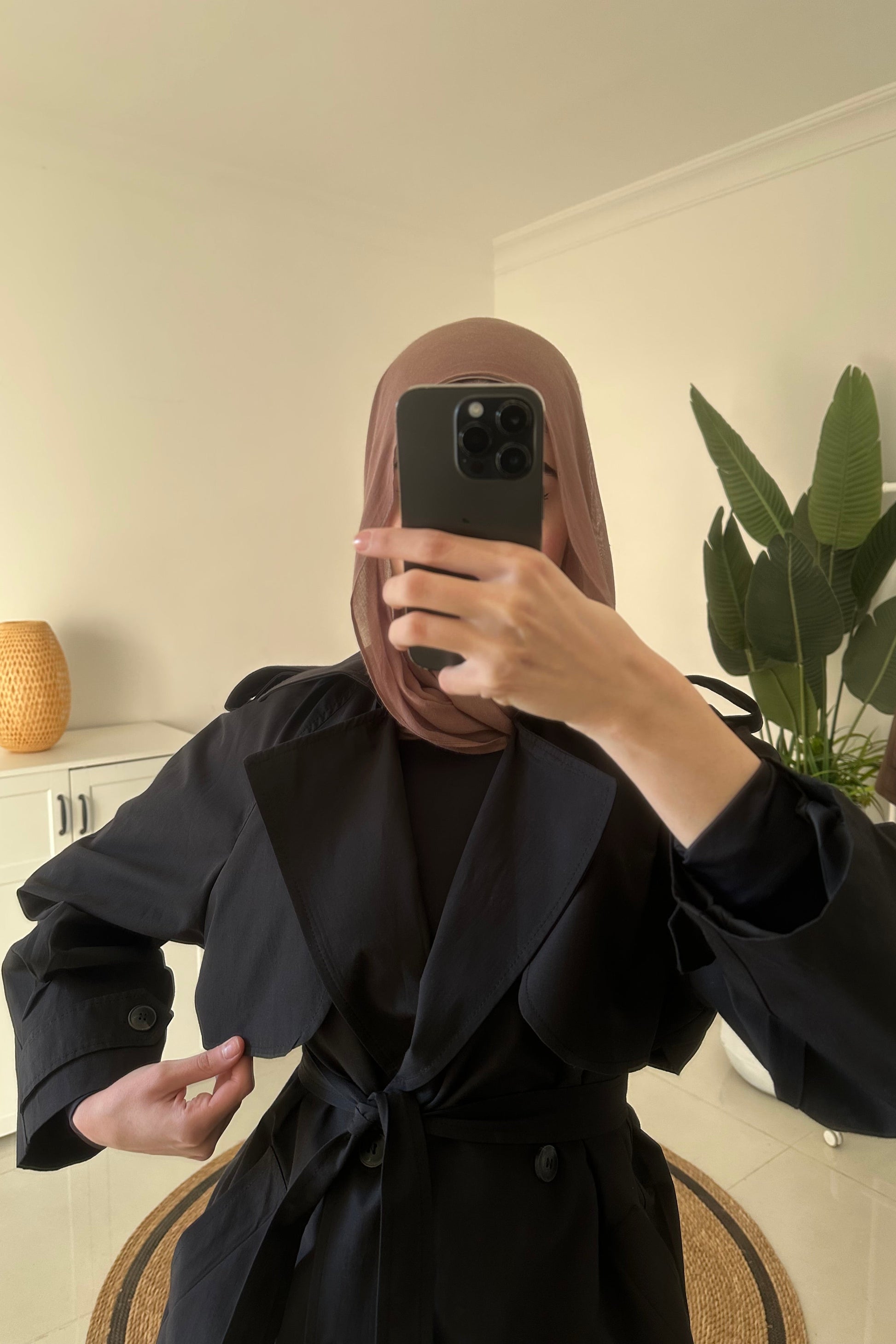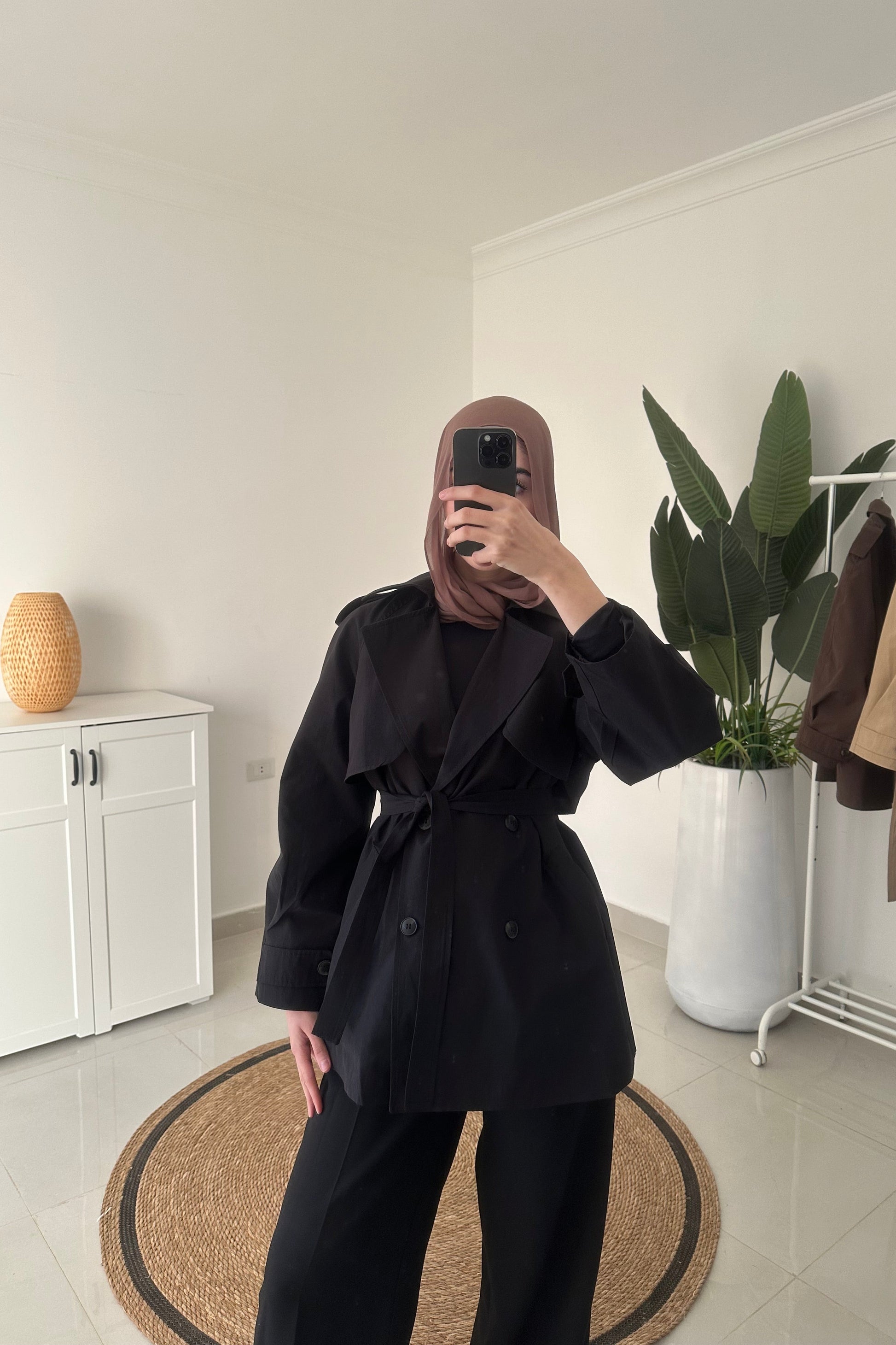 Mid Length Trench Coat- Black