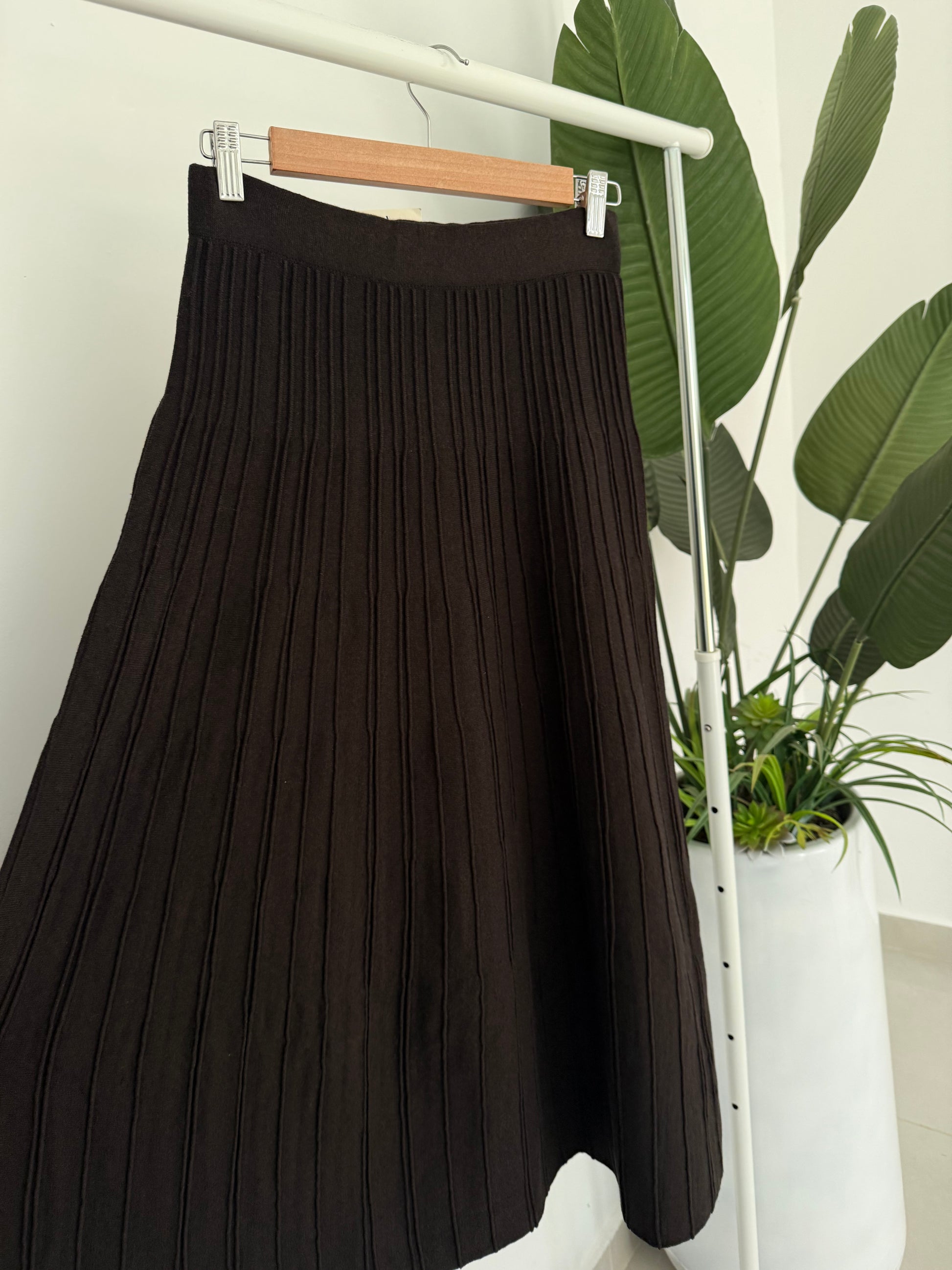 Pleated Triko Skirt- Brown